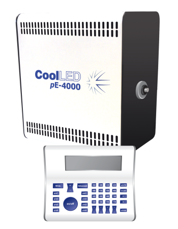 The pE-4000 sets the standard as the universal light source for fluorescence microscopy. Users can operate the system as a simple white light source (replacing a conventional mercury-based light source), or as an advanced, fully-controllable, excitation and stimulation source. The flexibility and extensive functionality of the pE-4000 broadens the range of illumination options in core facilities.
